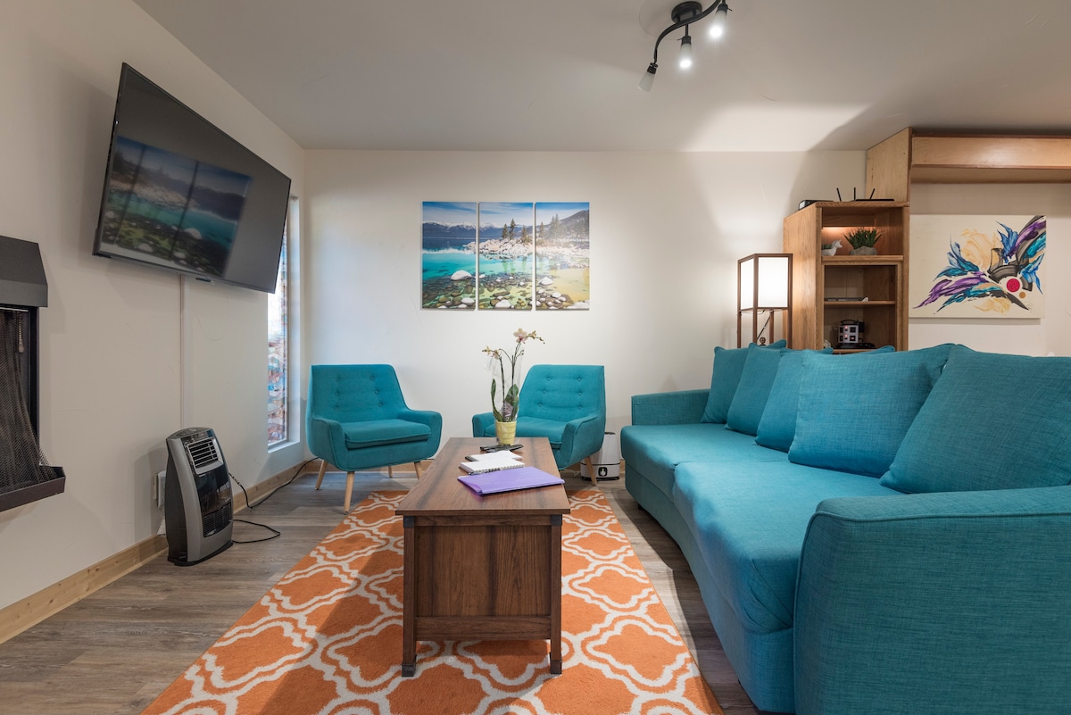 Our lake retreat is situated on Tahoe's picturesque North Shore. Perfect for couples, unit features include a full kitchen, one bedroom with a king bed, one bathroom, a queen air mattress (perfect for kids age 12 and under), WIFI, cable television in both the bedroom and living room and smart TVs. The unit is just a half block from Lakeshore Blvd. and a short walk to the Hyatt. Just minutes away from restaurants, hiking, mountain biking, tennis, golf and world class skiing.