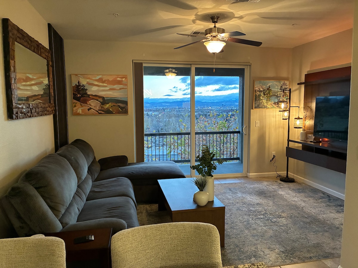 Bright, airy 1,400 sq ft modern retreat with two private king suites full ensuites and half bath on 2nd level. Take in neon city views and winter Alpenglow over Mt. Rose. Minutes to the airport, casinos, Truckee River, and quick drives to Mt. Rose and Incline Village. Close to dining, coffee, and the arts district. Brand-new décor, bedding, and appliances, plus a two-car garage—perfect for ski or hiking adventures. Stay at Alpenglow, where you’ll never be bored—unless you’re cozy on the sofa!