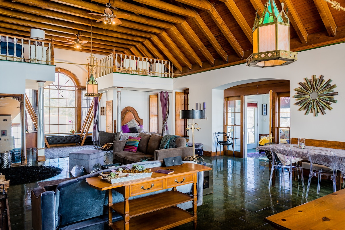 Set on 38 acres, the home is influenced by Irish equestrians. Its owner Kelli spent time learning from some of the best horseman in Ireland who resided in their own “Hunt Box”or small living quarters connected directly to the barn. The large floor to ceiling windows allow you to experience watching the horses in their natural state. The space provides guests with the small, simple and beautiful moments of being an equestrian. This is an unforgettable experience like no other.