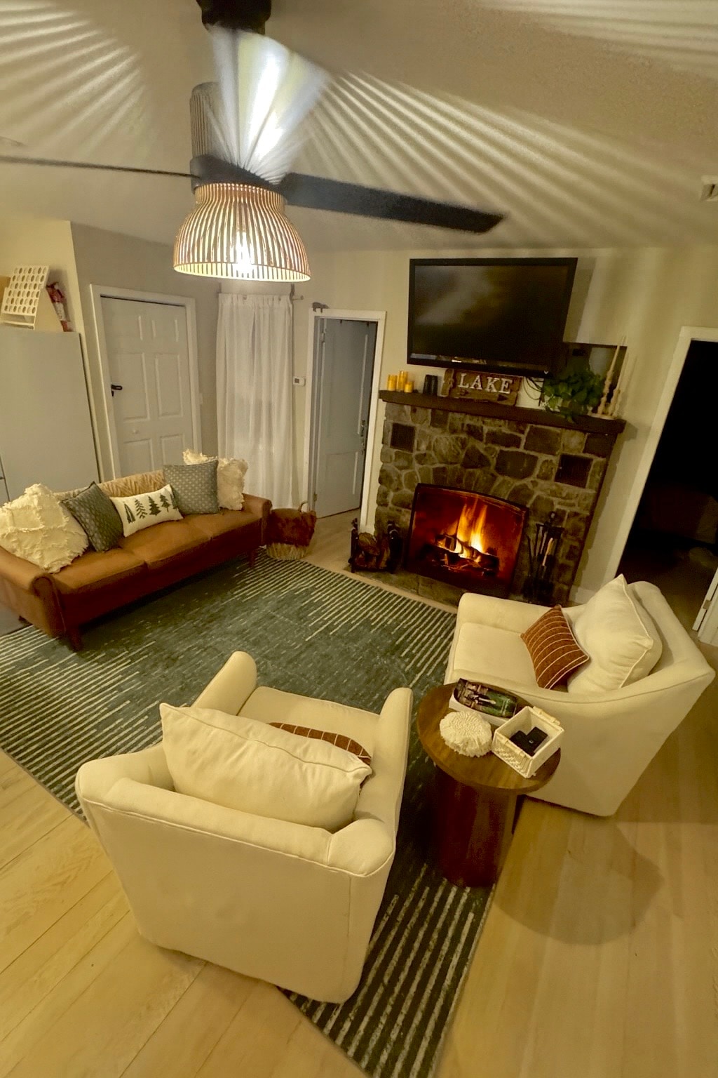 Welcome to our COZY RIVERFRONT CABIN! This 3-bedroom, 2-bath escape sits right on the water and sleeps up to 8. LOADED with amenities! Enjoy a cedar wood sauna, custom wood-burning hot tub, private movie theater, a crackling fire pit, riverside hammock, and a fishing dock overlooking the river. Discover the unique specialties that every season has to offer with family and friends to unwind, reconnect, and soak in peaceful, unforgettable moments.