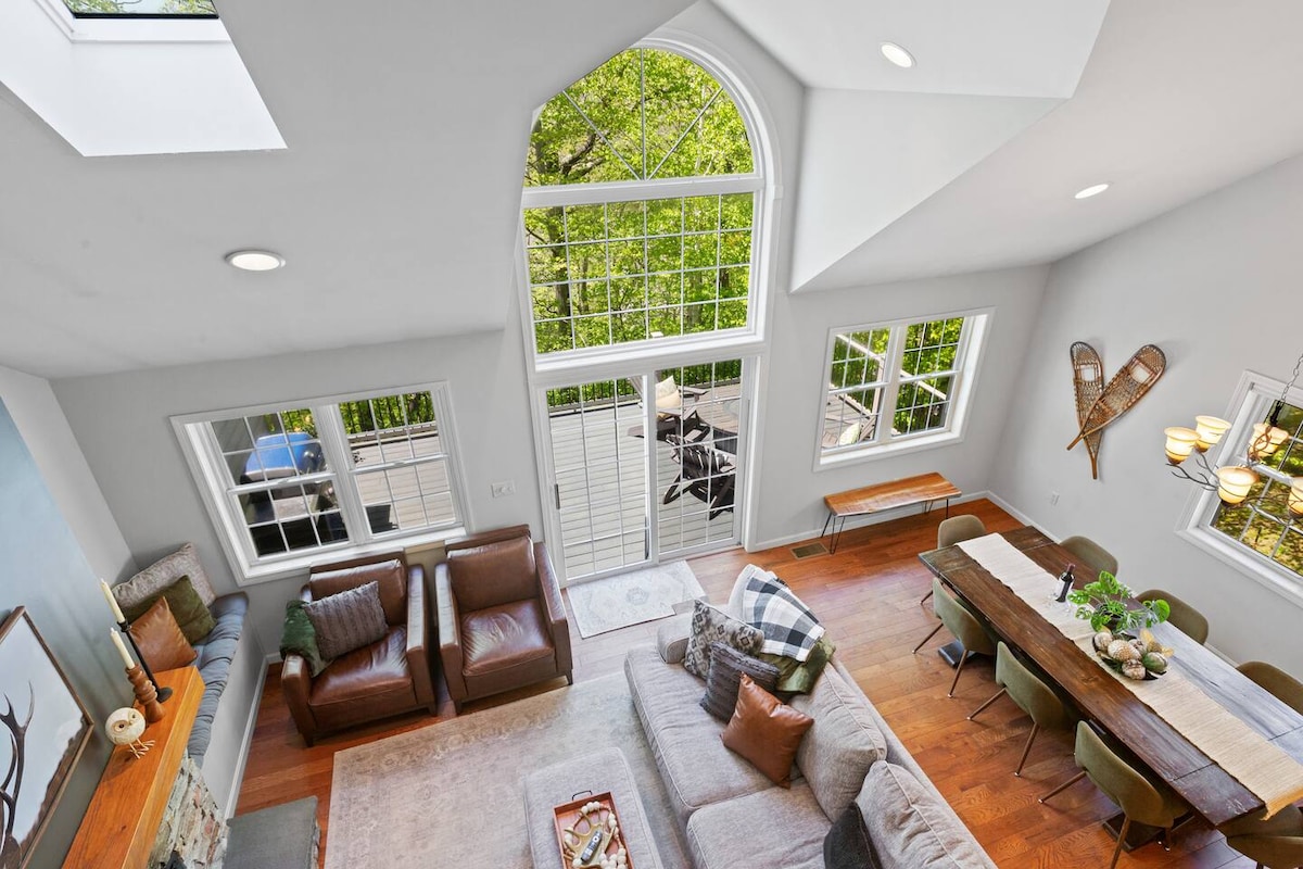 Lakefront escape with huge windows & bald eagles! Just 10 min from June Farms & other popular wedding venues. Soak in lake views from the bright great room or unwind by the fireplace. Cozy TV room, spacious kitchen, 4 bedrooms (2 king, 2 queen, all w/ desks) + 4 baths. Seasonal lake access, dock, deck. Swim/kayak at your own risk. No guest boats. No events.