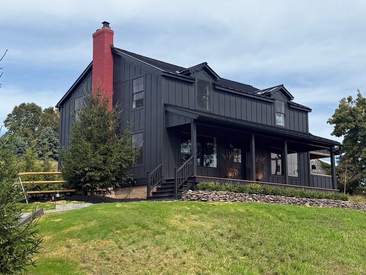 This property is the perfect stay if you are looking to visit June Farms and need more space than The June Farms cabins are able to accommodate. The view from the kitchen is something out of a Norman Rockwell painting. Your Stay Includes: * 3 Bedrooms * 2 bedrooms with plush king beds * 1 bedroom with a queen on queen bunk beds * 3 Full Bathrooms * Plunge Pool – cold pool in the summer, hot tub in the winter * Theater Room * Outdoor Patio & Grill * Central Air & Wi-Fi * Chef's Kitchen