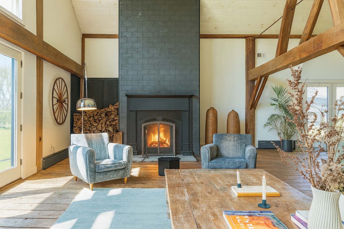 Blue Cabin is a cozy, design-forward retreat between the Capital Region and the Berkshires. Enjoy vaulted wood ceilings, a forest-green kitchen, and a spa-style bath. Outside, unwind in the covered lounge with U-shaped sectional, charcoal grill, and TV—or explore the backyard, where a creek runs through and a seasonal flower garden blooms. Peaceful, private, and perfectly located for both rest and adventure.
