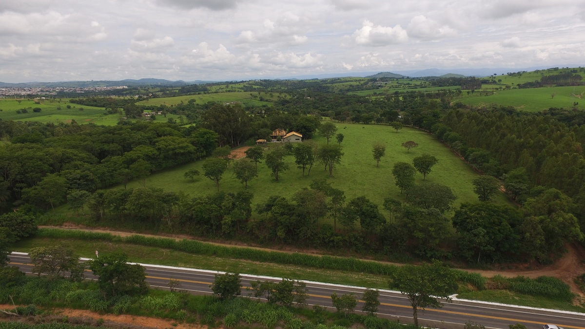 Casa de férias mineira rodeada pela natureza.
