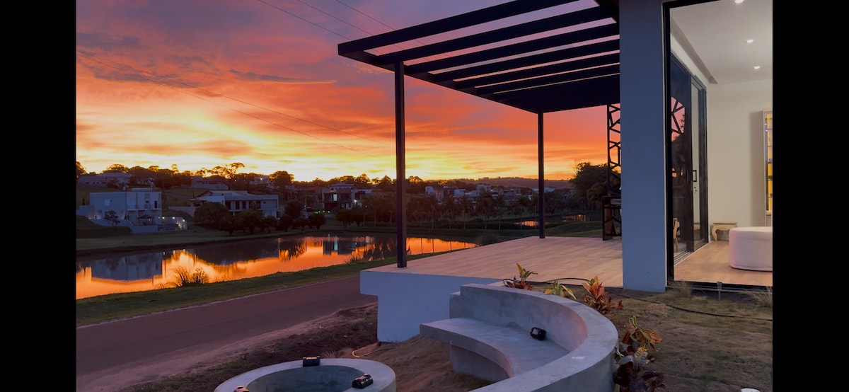 À beira da Represa Jurumirim, a Casa do Pôr do Sol é um verdadeiro refúgio de tranquilidade e beleza natural. Localizada em condomínio fechado, com 4 suítes, a casa possui seu jardim rodeado de árvores, que se estende até o lago, proporcionando uma vista deslumbrante da água cristalina e do horizonte. A casa é pé-na-areia, com quadra de beach tennis em frente. Quando o sol se põe no horizonte, o céu se enche de cores vibrantes e reflete na água, criando um espetáculo de tirar o fôlego.