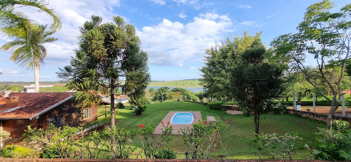 Casa em frente à represa com varanda, churrasqueira, sala de estar, cozinha e 4 suítes. A chácara tem área total de 6.000 m² com estacionamento aberto, além de pomar e muito verde. Nas proximidades há hotéis, restaurantes, padarias, mini-mercados, marina e outras facilidades. A cozinha é bem equipada, com fogão, forno micro-ondas, geladeira duplex, pratos, talheres, panelas e travessas. Você vai amar. Meu espaço é bom para casais, famílias (com crianças) e animais de estimação.