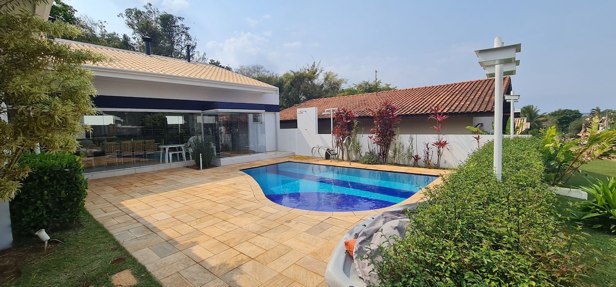 Casa maravilhosa, muito espaçosa e confortável com com 300m2 de area construida, sala enorme com 60m2. Toda equipada com ar condicionado nas salas e nos quartos. Área gourmet completa, com churrasqueira motorizada, forno a lenha, e geladeira extra. Piscina grande, com aquecimento central através de um sistema moderno de trocador de calor que aquece a piscina a 30° (é só avisar p ligar antes) Em outras notas e detalhes, leia sobre a utilização dos clubes, que são controlados pela administradora