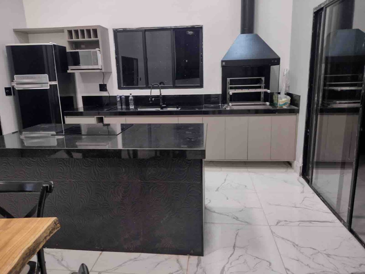 Leve toda a família a este ótimo lugar com muito espaço A casa é nova recém feita Possui 5 suítes (acomoda bem 15 pessoas em camas e temos colchões extras Sala de jantar Sala de cinema Cozinha integradas área gourmet equipada: freezer Churrasqueira, mesa de sinuca e pingpong Banheiro externo Piscina aquecida Lareira Ar condicionado em todas as suítes Tvs na sala de tv e área gourmet Internet Vista das 3 suites de fundos superior com vista para piscina da sala vista pra represa Jurumirim!