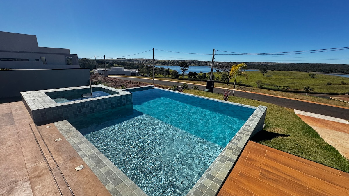 Casa com vista incrível para a Represa Ar-condicionado em todos os cômodos, incluindo sala 5 dormitórios, sendo 4 suítes, e comporta até 18 pessoas Banheiros com cromoterapia 2 escritórios (1 com ar); wi-fi excelente Quadra de Beach e Parquinho Infantil Privativo. Piscina: raia de 20m Jacuzzi: sob consulta Filtro de água e Nespresso Secador, roupa de cama, adega e cervejeira Iutúbi: "SC XIII – Casa 5 quartos, 4 suítes, 17 pessoas, Jacuzzi, Quadra de Beach, Churrasqueira, Piscina"