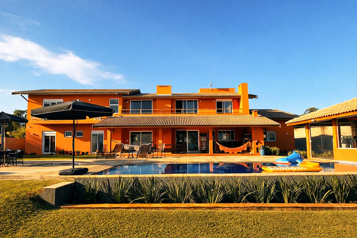 A casa projetada pelo arquiteto Décio Navarro está em um condomínio fechado com praia particular e segurança 24 horas. Com 650 metros de área útil, nossa casa fica em frente a represa e dispõe de 5 suítes, amplas salas e lazer completo: piscina, churrasqueira, forno de pizza, sauna e ofurô. O condomínio conta ainda com quadra de tênis com iluminação noturna, píer, rampa de acesso para pequenas embarcações e lindos espaços para caminhadas.