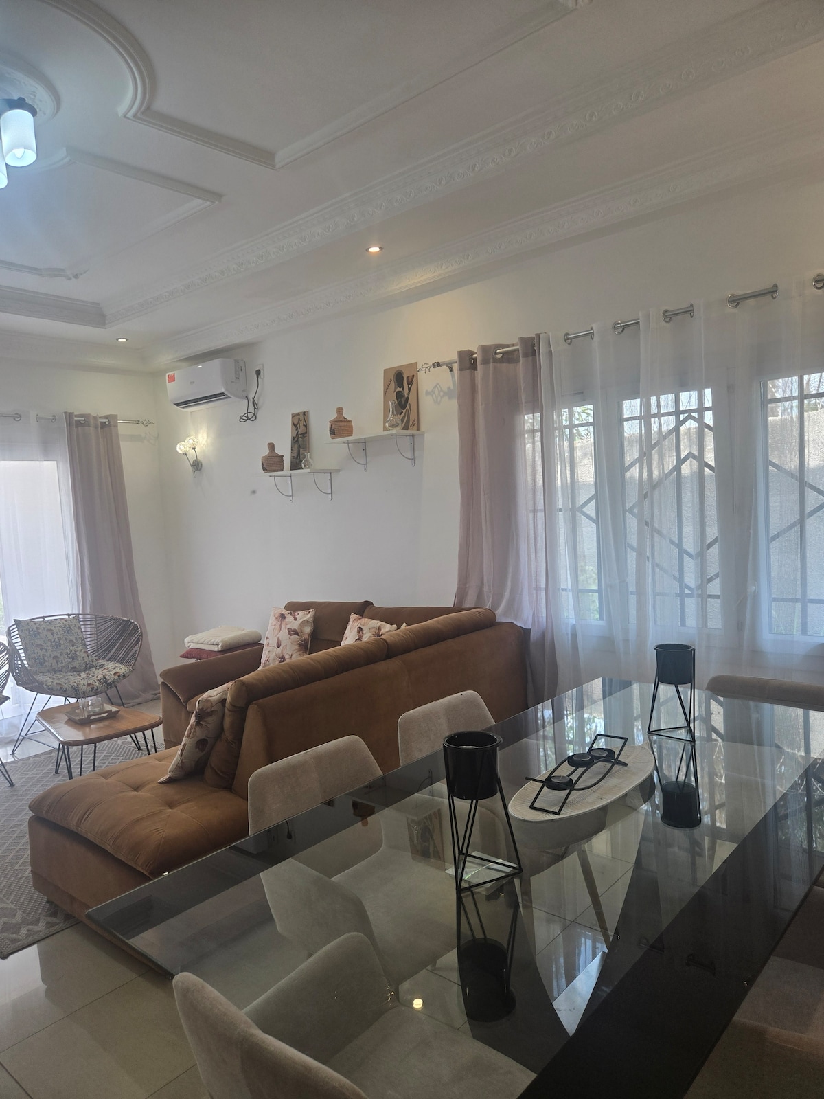 Bienvenue à la Résidence Akia ! Cette résidence moderne de 2 chambres et 2,5 salles de bain vous accueille dans un cadre paisible, au cœur du quartier Songolo à Pointe-Noire. Profitez pleinement de votre séjour grâce à un jacuzzi privé niché dans le jardin arrière, ainsi que des équipements haut de gamme. Idéale pour les familles, les voyageurs d’affaires ou les groupes d’amis souhaitant découvrir tout ce que Pointe-Noire a à offrir dans le confort et la tranquillité.