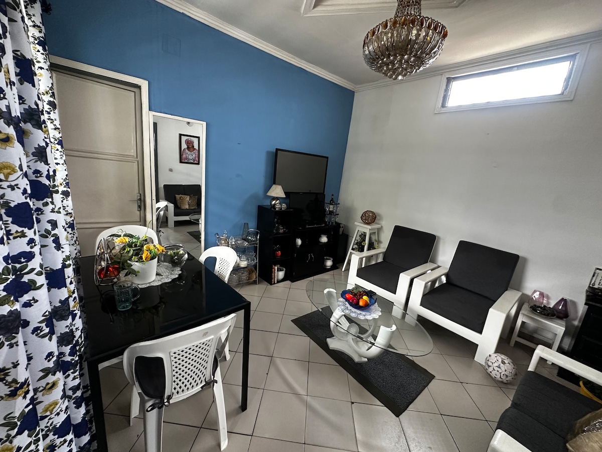 Profitez d’un séjour sans souci dans cet appartement tout confort situé au rez-de-chaussée d’une résidence sécurisée avec gardien. Vous bénéficierez du Wi-Fi, de Netflix, d’une cuisine équipée, d’un espace buanderie, et du service de ménage quotidien inclus, linge et vaisselle pris en charge. Navette gratuite arrivée-départ. Groupe électrogène, jardin commun et proximité de la plage (10 min). Idéal pour détente, travail ou vacances. N’hésitez plus et réservez votre logement.