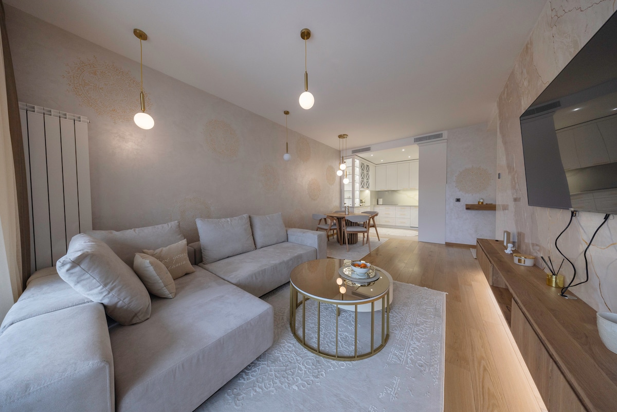 In the city center, heart of Belgrade, 100 meters from the main Knez Mihailova street, luxury stay in a designer flat a step away from restaurants, trendy boutiques, Rajiceva shopping mall, and cultural landmarks such as the most famous Kalemegdan park 5 minutes by walk. Beton Hala, Skadarlija, Belgrade Waterfront are just within a km walk distance! For your stay, every detail has been carefully curated to provide a lavish and contemporary living space while enjoying the spirit of Belgrade.