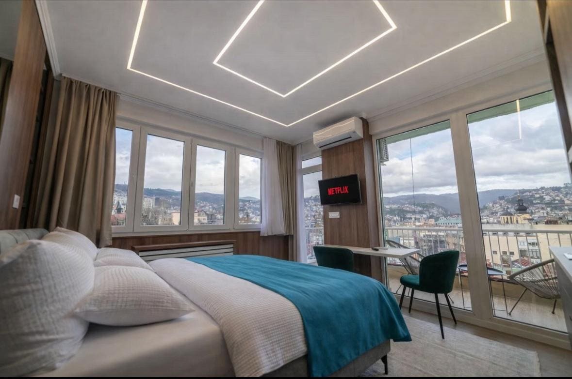 Uživajte u elegantnom iskustvu koje nudi ovaj smještaj za 2 + 2 osobe a koji se nalazi u strogom centru Sarajeva, 100 m od Narodnog pozorišta i festivalskog trga, Baščaršija 10 minuta lagane šetnje, Vječna vatra 210 m, Katedrala Presvetog Srca Isusova 280 m, Saborna Crkva Rođenja Presvete Bogorodice 140 m, Husrev-begova džamija 550 m itd. Za one koji šetnjom žele obići grad idealan izbor.