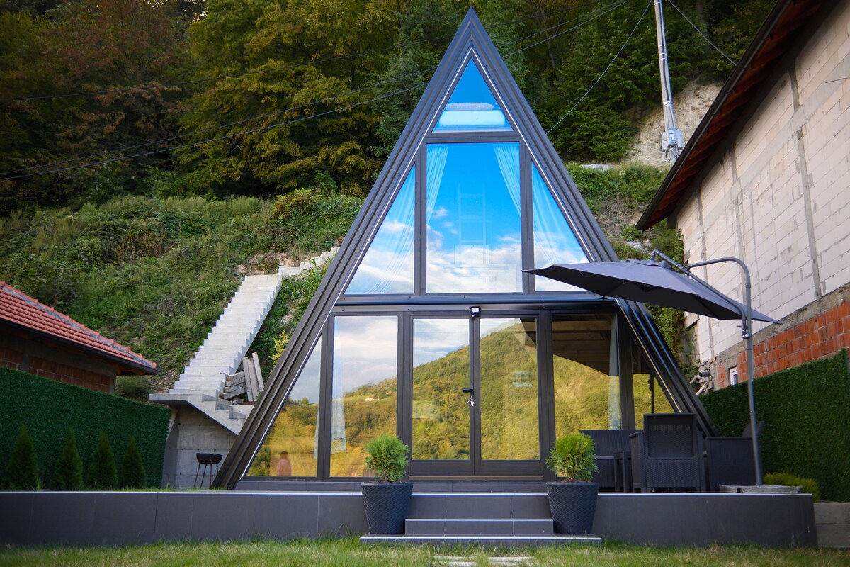 Welcome to Bosnian Pyramid Glamping, located at the foot of the Bosnian Pyramid of the Sun. Glamping consists of six bungalows with six bathrooms, a two common kitchens, and two common dining rooms, terraces, a free parking space, garden, relaxing area and hot tub area with outdoor showers.