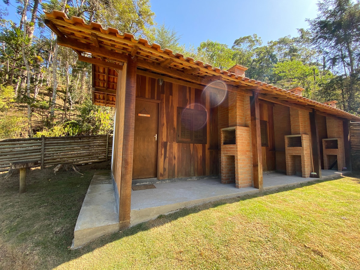Deste chalé pode se ver o Ribeirão por isso o nome de Brilho d Água. Acomodação está toda repaginada e completa, com cozinha, jacuzzi, ar condicionado, cama king, varanda e até uma rede suspensa de descanso e relaxamento entre o chalé e a cachoeira privativa. Além de tudo está no meio da natureza com vista para a Serra da Mantiqueira. Um refúgio ideal para recarregar a Bateria e ter momentos únicos de Romance.