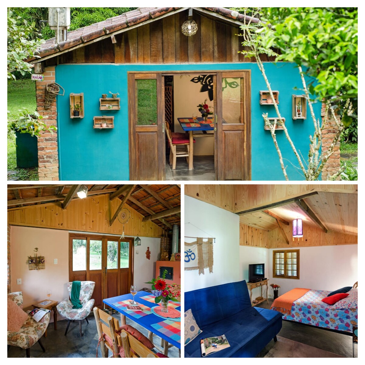 No alto do Vale de Santa Clara, o chalé Bucólico Anônimo e um espaço ideal pra vc que procura paz e sossego! Feito pensando no conforto e na praticidade o chalé possui uma varanda com vista pra montanha onde se conecta com a natureza faz parte da estádia!!! No mesmo espaço temos o chalé Manacá da Serra mas mesmo sendo no mesmo espaço as entradas são separadas e o quintal também. Com isso ambos vão ter sua privacidade
