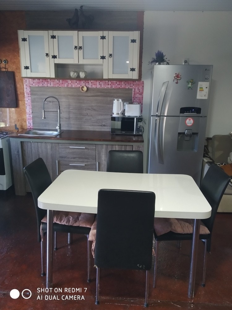 linda casita (100m²)para todo el año en una chacra de 7 h para 2-6 personas, living, cocina equipada, 1 habitación matrimonial, entrepiso con camas para 3, una cama plaza y medio, baño, agua caliente,estufa de leña ropa de cama, toallas, lavaropa parillero , piscina ,jardin caballos, ovejas,gallinas, gatos y 3 perros