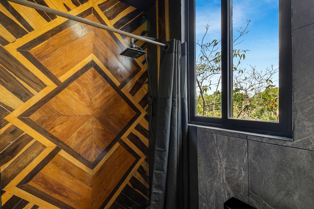 No availability? Other treehouses on Host Profile. Enjoy this unique Jungle Treehouse Experience in the tree tops. The Canopy treehouse is intentionally elevated (height: 6 Mts/20ft) and shaped amongst the trees. A spacious Eco dome gives you all the comfort of Glamping: King bed, private bathroom & HIGH SPEED fan. Relax in nature, swing the hammock enjoying the views or gaze at the stars. The property is located 10-15 MIN DRIVE from different beaches of Tulum & a short stroll to nearby cenotes.