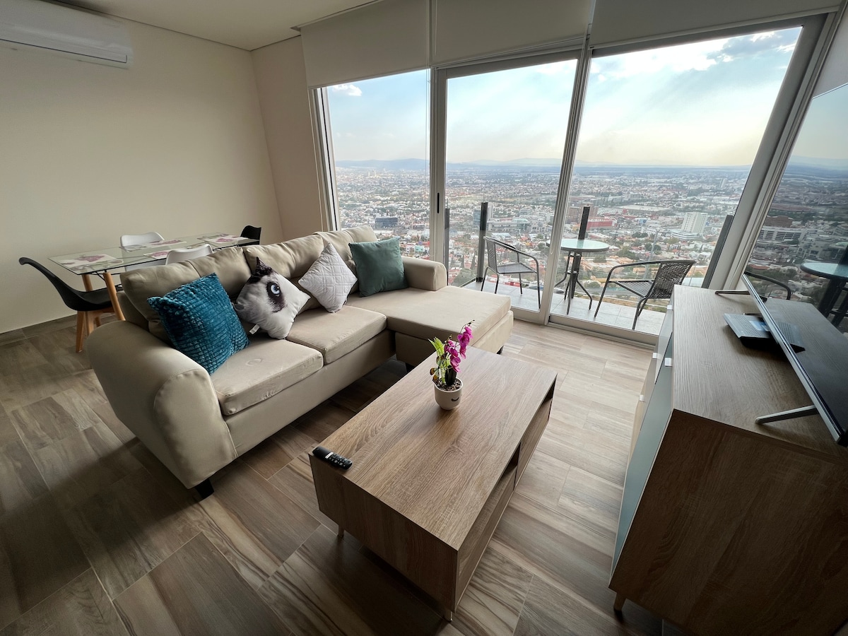 ¡Despierta frente a la majestuosa Peña de Bernal desde cada rincón del departamento! Ubicado en el corazón del Pueblo Mágico de Bernal, este espacio combina comodidad y la mejor vista. Cuenta con una terraza ideal para admirar amaneceres o noches estrelladas, sala, habitación con cama queen y cocina equipada. Su ubicación céntrica te permite explorar a pie tiendas, restaurantes y la icónica peña. Perfecto para parejas o familias pequeñas que buscan relajarse con un paisaje inigualable.
