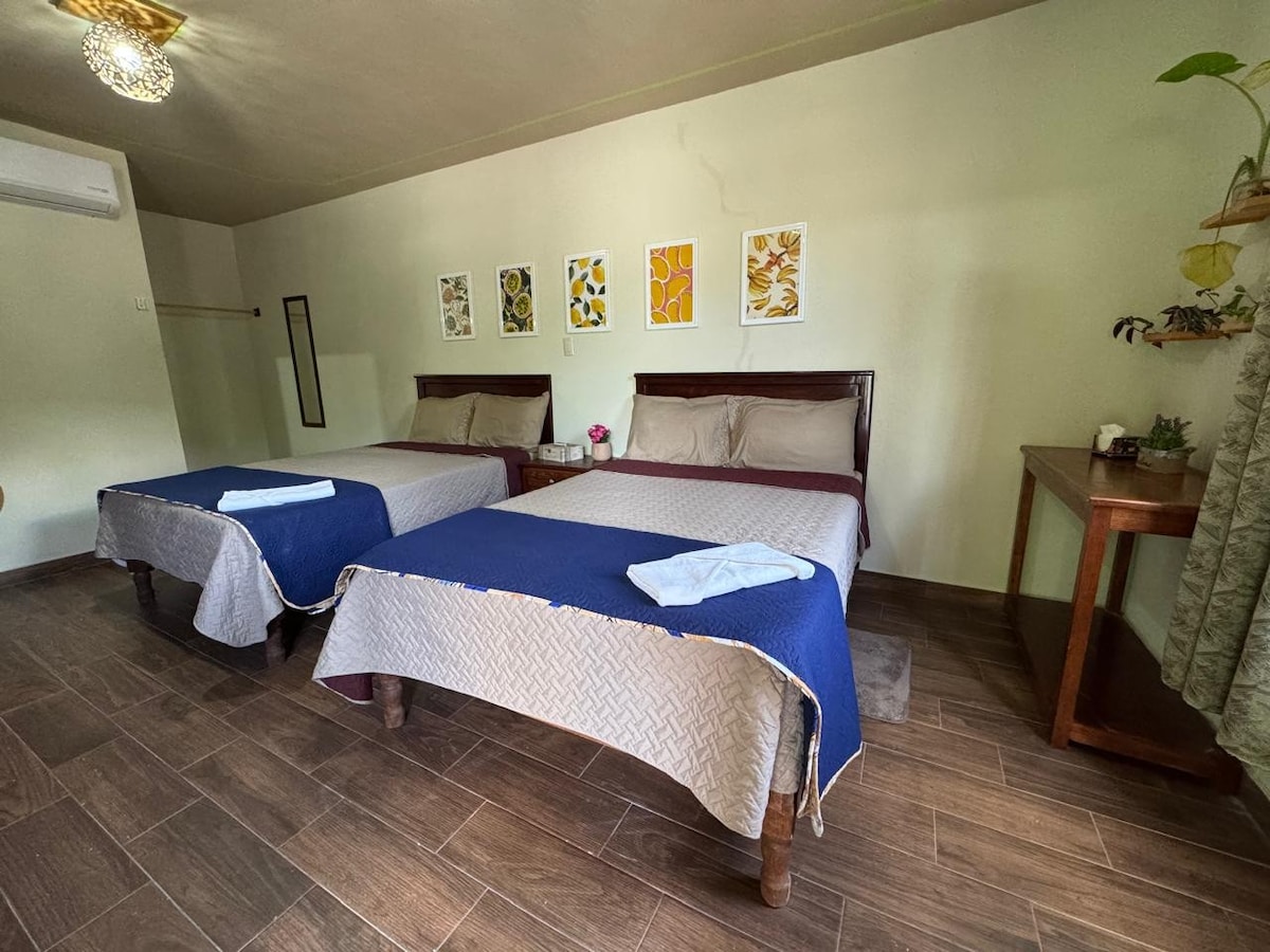 Estancia centrica, de fácil acceso a tiendas y restaurantes populares . Disfruta de nuestra agradable terraza y alberca ubicada en el último piso , contamos con agua caliente, wi-fi, TV , son dos camas matrimoniales, somos un espacio tranquilo y acogedor para hospedarte cuenta Con COCINA