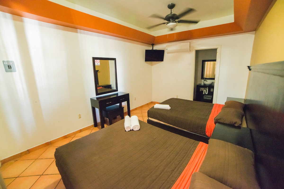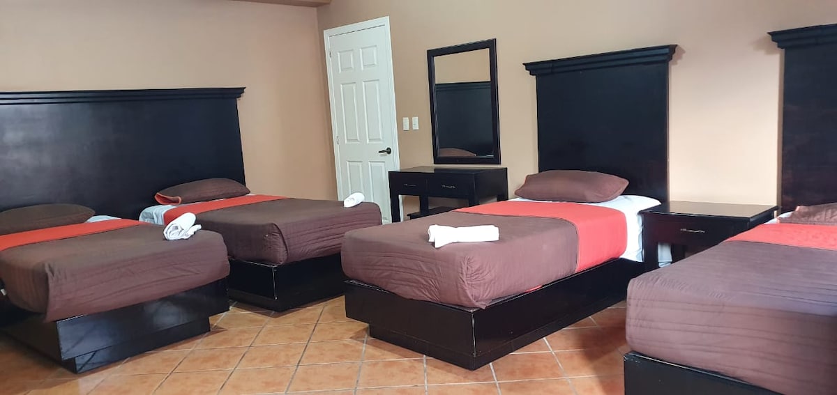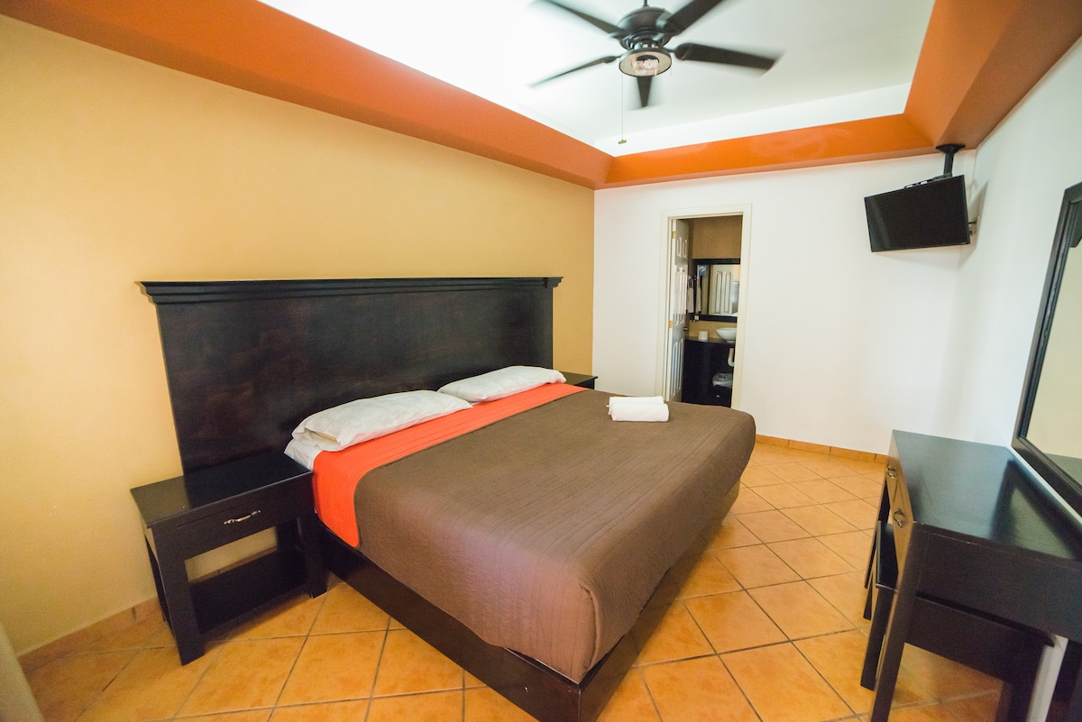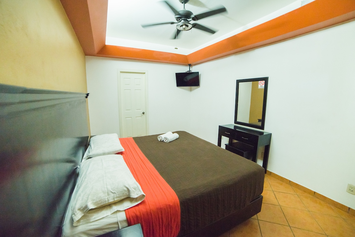 La habitación esta amueblada, tiene aire acondicionado, tv con cable, closet con acabado de madera, baño con canceles de cristal, ventilador grande de techo, luz oculta nocturna y nuestro plus... somos los únicos en el centro De Jalpan con estacionamiento totalmente cerrado y exclusivo para huéspedes, estamos a 50 metros tanto del jardín principal como del mercado municipal, A solo dos cuadras de la misión juniperana y muy cerca de todo caminando.