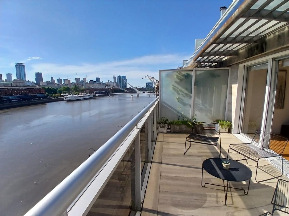 Brand new two rooms apartment. Fully furnished and equipped. In the fanciest neighbourhood of Buenos Aires: Puerto Madero . Located on the 12th floor has an amazing view to the river and the city skyline. It is quiet and comfortable. The area is safe and full of restaurants and sights worth visiting. The location is very convenient. It is within walking distance from Plaza de Mayo. This neuralgic point of Buenos Aires is connected by several public transportation means to the rest of the city.