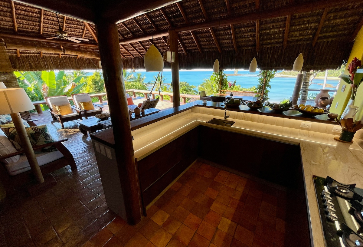 Viva a experiência de uma casa baiana, situada no melhor ponto da Vila do Outeiro, em frente da área de reserva da falésia da trilha que desce para praia com vistas espetaculares do mar. O luxo está na simplicidade, nos detalhes da arquitetura do sul da Bahia, onde os mestres fazem uso intenso da madeira nas janelas, colunas e sustentação do telhado no piso do terraço. Uma casa com o aconchego da decoração criada por sua dona, para receber sua família, amigos e agora nossos hóspedes.