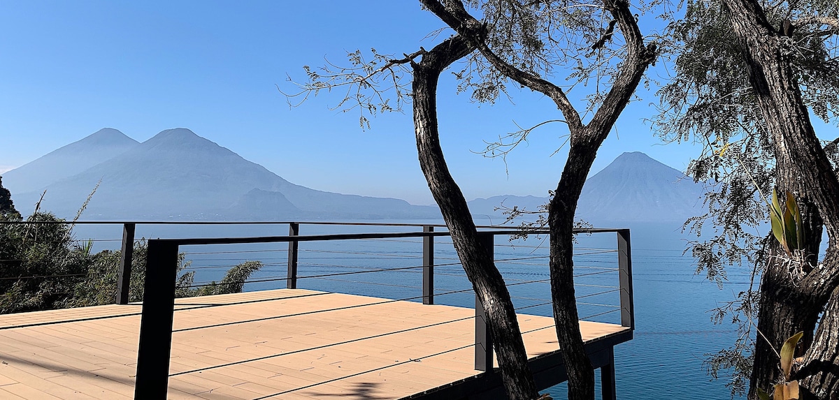 Very Unique & Modern Luxury House up in the Guatemalan Highlands with the sensation of floating up in the sky (1700m) -Features unobstructed Starlink connection with 24 hours of unbroken electricity (lithium/solar) -All windows folds fully open to greet the breathgiving views of 5 vulcanos and the “infinity lake” of the ever changing “painting” -Filtered spring water on tap -Bathroom hot tub for a closed or open door experience -12 m2 cantilevered hammock deck-net for stargaze & relaxation