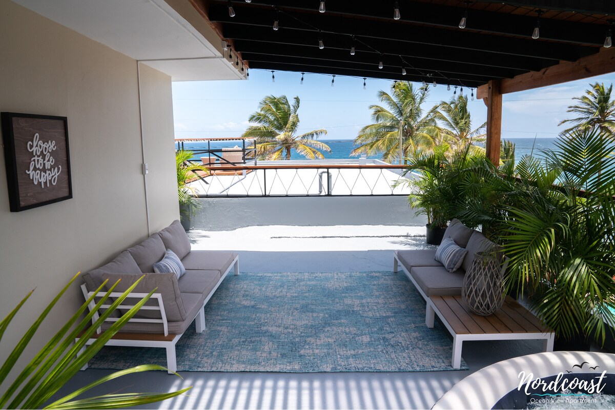 Vista al mar, tranquilidad y comodidad te esperan en Nordcoast Ocean View Apartment! Este es el lugar perfecto para pasarla con un acompañante (Parejas) o tener un "Solo Retreat". El alojamiento cuenta con un Matress Serta Pillow Top, Aire Acondicionado y Love Seat reclinable para ver TV. En el exterior encontrarás un Mirador ideal para una buena copa, taza de café o leer un libro mientras escuchas el mar. La Terraza tiene un Jacuzzi al cual le cambiamos el agua entre reservas. Te esperamos!