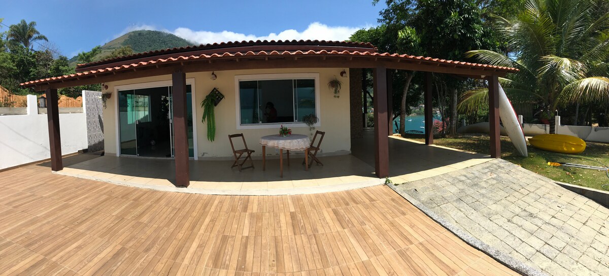 2-storey chalet and a viewpoint overlooking the sea surrounded by the Atlantic Forest. There are 2 bedrooms, office, upper deck with access to the gazebo, equipped kitchen, TV room with Netflix, bathroom, fully fenced backyard, shower, barbecue and garden with fruit trees. We have Wi-Fi throughout the property. We are just 10 minutes from the pier and 7 minutes from the shops of Vila do Abraão. Here it is not just accommodation but an experience of immersion in nature :-)