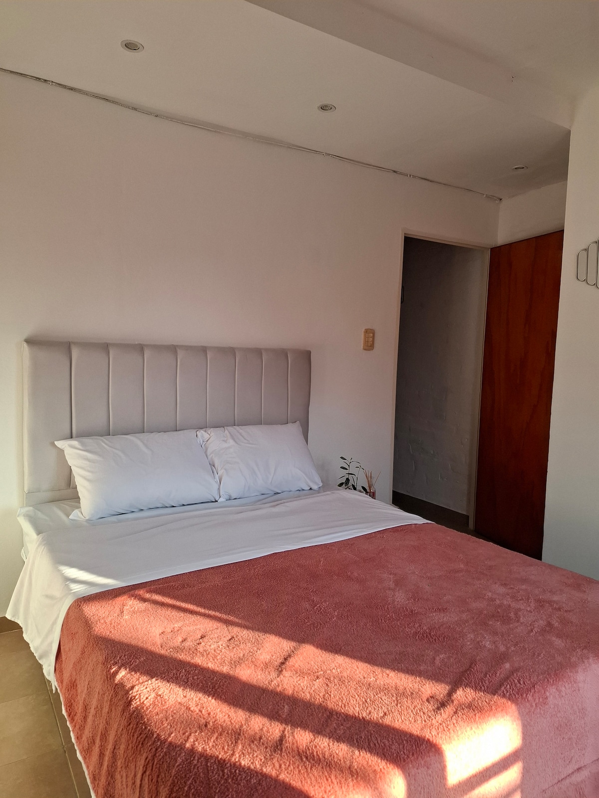 Relajate en este espacio tan tranquilo y moderno. Este hermoso departamento ofrece una experiencia de vida moderna y cómoda. Con sus amplias ventanas, la luz natural ilumina todo el espacio, creando una atmósfera acogedora. El departamento está equipado con WiFi, una televisión inteligente, aire acondicionado y cerradura electronica que hace mas seguro el sitio, lo que lo hace perfecto para relajarse después de un largo día. Ademas tiene un supermercado con todo lo que necesites enfrente.