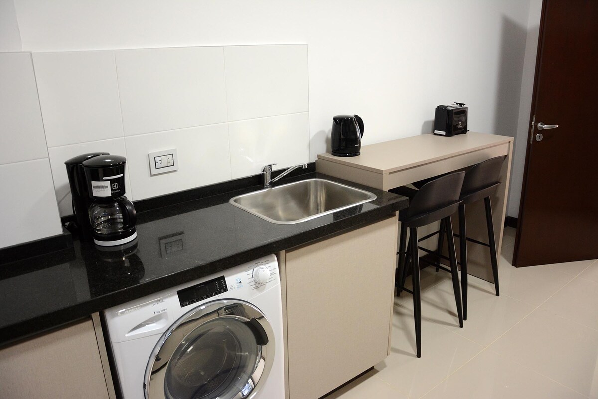 Alojamiento de 1 dormitorio, totalmente equipado, wifi, smar tv, piscina y laundry! Ideal para instancias largas y cómodas, seguridad las 24hs! Ubicado en una zona residencial, cuenta con mini mercados y gimnasio cerca ! Y también con Cochera ( valor a parte de la reserva)