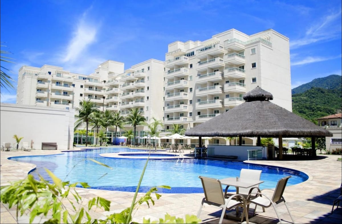 Lindo Loft PÉ NA AREIA. Localizado no condomínio Pier 51 em Mangaratiba. Uma suíte para casal com ar condicionado potente, sala com sofá-cama para duas pessoas. Cozinha bem equipada com fogão a gás 4 bocas com forno. geladeira duplex, microondas, forninho elétrico, sanduicheira , filtro elétrico Everest carvão ativado, cafeteiras, liquidificador, panela de pressão e todos os utensílios necessários em uma cozinha. Estacionamento dentro da propriedade em frente ao loft. Piscina privativa.