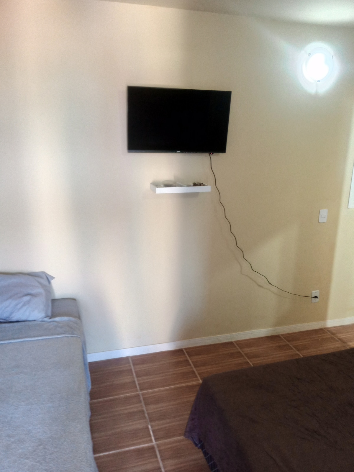 Suíte privativa para até 3 pessoas com camas box, ar condicionado, frigobar e TV plana.
