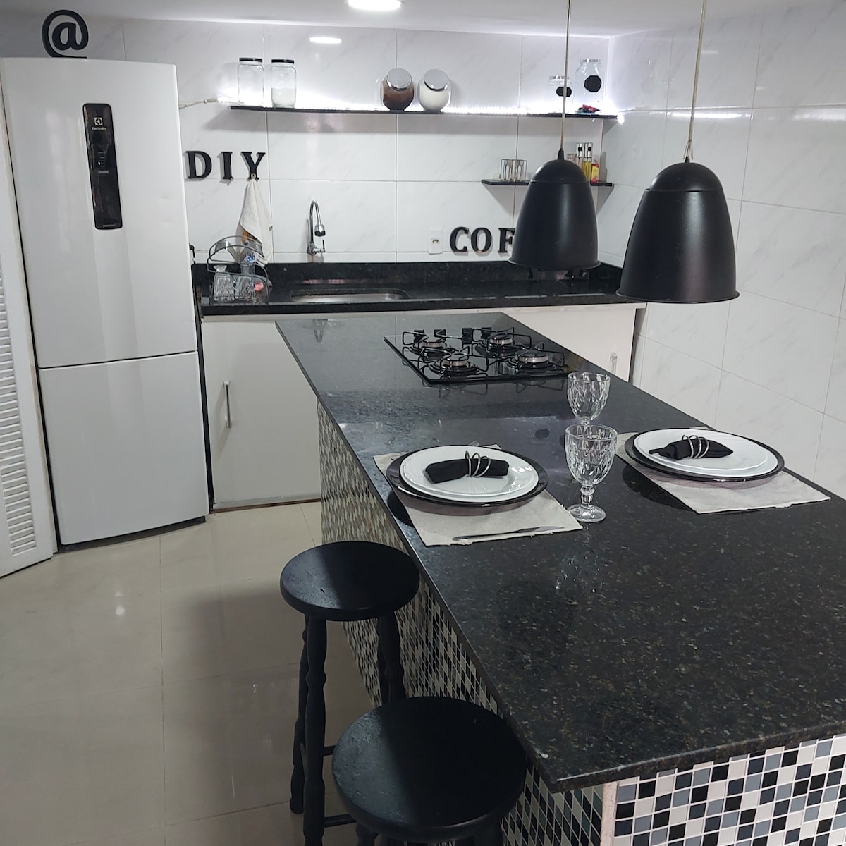 Lindo Loft PÉ NA AREIA. Localizado no condomínio Pier 51 em Mangaratiba. Uma suíte para casal com ar condicionado potente, sala com sofá-cama para duas pessoas. Cozinha bem equipada com fogão a gás 4 bocas com forno. geladeira duplex, microondas, forninho elétrico, sanduicheira , filtro elétrico Everest carvão ativado, cafeteiras, liquidificador, panela de pressão e todos os utensílios necessários em uma cozinha. Estacionamento dentro da propriedade em frente ao loft. Piscina privativa.