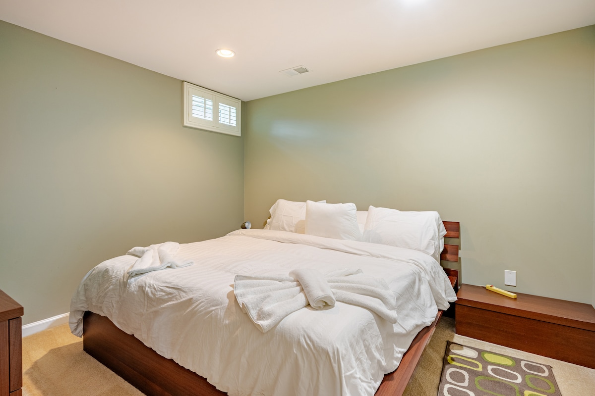* 3 Floor Mattresses & 1 Air Mattress In Bedroom Closets * Located in the Lower Level * No Extra Work at Checkout * Extra Pillows, Sheets & Blankets * Professionally Cleaned Luxury and serenity in an amazing location! At nearly 2,100 sq. ft. this spacious two bedroom/one bath apartment located in the lower level of an amazing single family home will afford you all the comforts of home. Serene, peaceful, wooded and private, yet still close to all the attractions and amenities of the DC area
