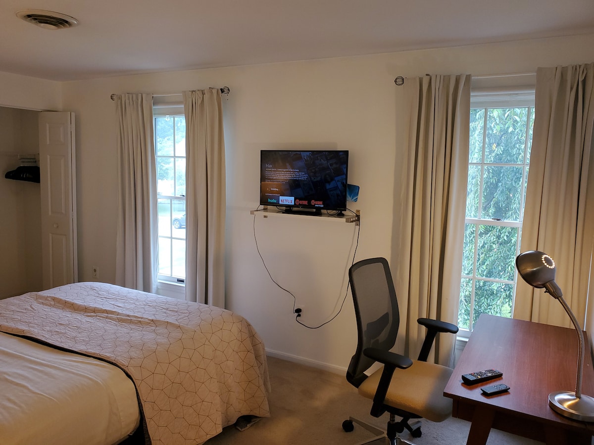 When you stay here you will experience the comfort of your home and close to various amenities. You can explore nature trails and lakes for a serene retreat. Home is located near Wiehle Reston Metro, providing easy access to D.C and Airports. You will enjoy a fully equipped kitchen with pots, pans, silverware, fridge, microwave, and washer & dryer. Your family will enjoy Gigabit high-speed WIFI for streaming on electronic devices and work quietly from private home office. * Book your stay now! *
