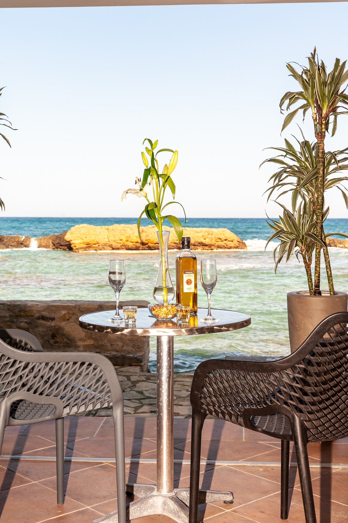 Η σουιτα βρισκεται μπροστα στην θαλασσα , υπαρχει χωρος που ο επισκεπτης μπορει να κατσει και να απολαυσει την θεα , και το απιστευτο ηλιοβασιλεμα,ο εξωτερικος χωρος μπροστα απο την σουιτα εχει τραπεζοκαθισματα και λειτουργει ως καφε μπαρ , μπορει να χρησιμοποιηθει απο τους επισκεπτες μας αλλα και απο περαστικους , στον εξωτερικο χωρο απο την σουιτα δεν παιζει μουσικη οποτε ειναι ησυχα , απο τις 20 Οκτωμβριου μέχρι τις 31 Μαρτίου δεν λειτουργεί το μπαρ οπότε ο χώρος είναι για τα δωμάτια