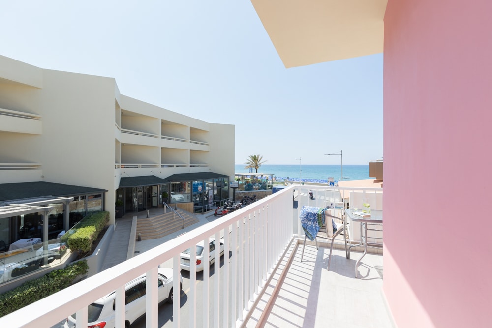 Beachfront apartment 71 m2 with a balcony of 20 m2. Two bedrooms, both facing the beach. Located in the city (surrounded by supermarkets, restaurants, shops etc) in the middle of a 2.900 m seaside road, ideal for walks and bicycle rides. Everything you may need (banks, children's playgrounds, general hospital etc) is within a radius of 1.500 m. Ideal for families with children. Car not necessary, unless you would like to use the apartment as a base to explore Crete.