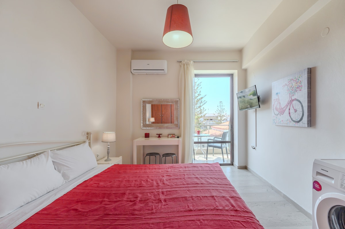 Clio Apartment Near Rethymno BeachDiscover the Clio Apartment, ideally located near the beautiful Rethymno beach. This comfortable and fully equipped apartment offers the perfect base for your stay in Crete.Features of the Apartment: Comfortable bedroom with a king-size bed. Fully equipped kitchen for meal preparation. Bright dining area and living room for relaxation. Bathroom with all amenities.