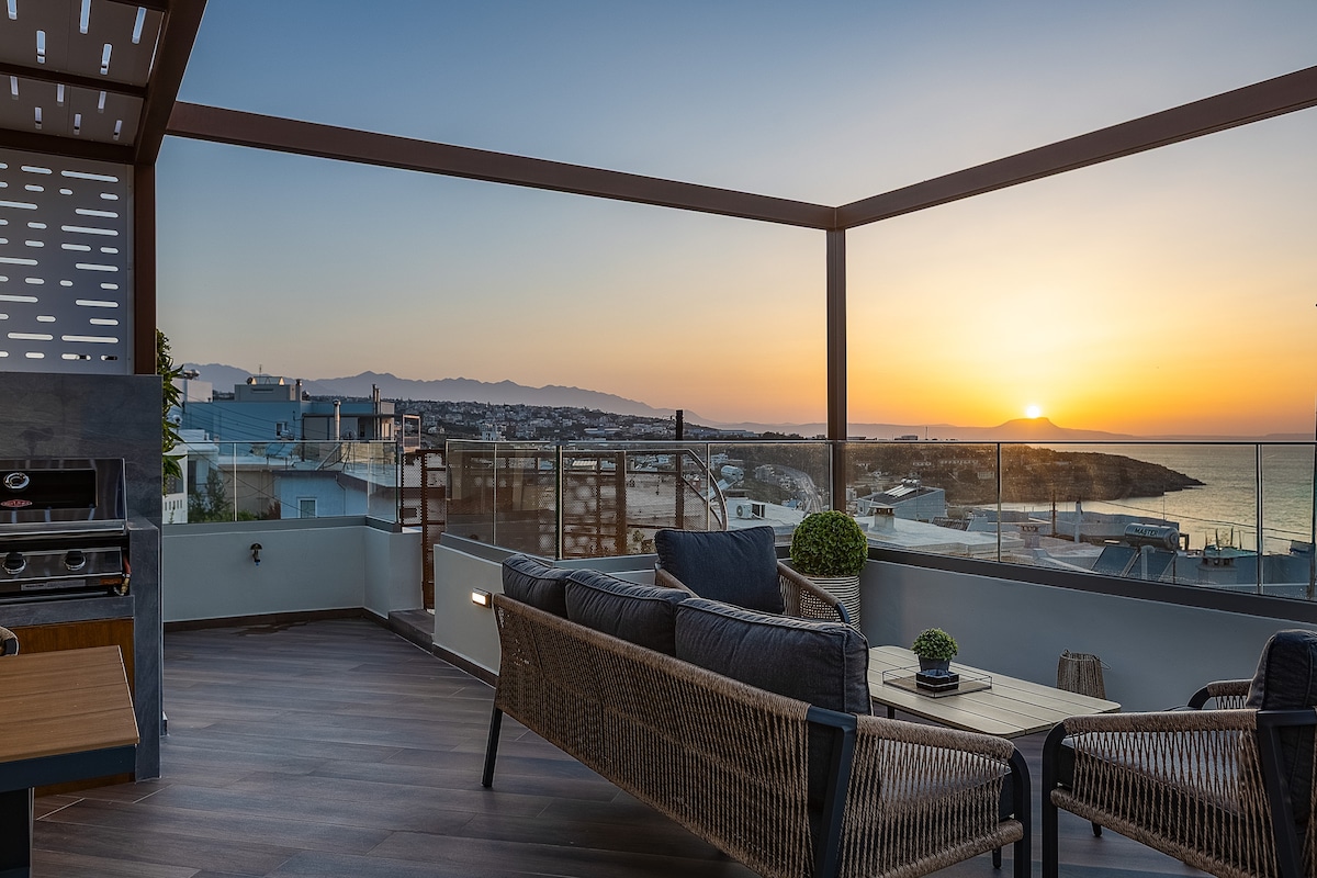 Χαλαρώστε κάνοντας μια μοναδική και ήρεμη απόδραση. Η ξεχωριστή του θέση του δίνει δυνατότητα να προσφέρει μοναδική θέα και ηρεμία. Συγχρόνως όμως απέχει με τα πόδια μόλις 5 λεπτά από την φανταστική παραλία του Ρεθύμνου και μόλις 5 λεπτά με τα πόδια από το κέντρο της πόλης. Η πολυτελή αυτή κατοικία αποτελείται από 95τ.μ. εσωτερικού χώρου, 40τ.μ. μπαλκονιού και 70τ.μ. γυμναστηρίου. Διαθέτει 2 υπνοδωμάτια, μεγάλο σαλόνι, τραπεζαρία, κουζίνα, 3 μπάνια, τζακούζι για 6 άτομα και εύκολο πάρκινγκ.