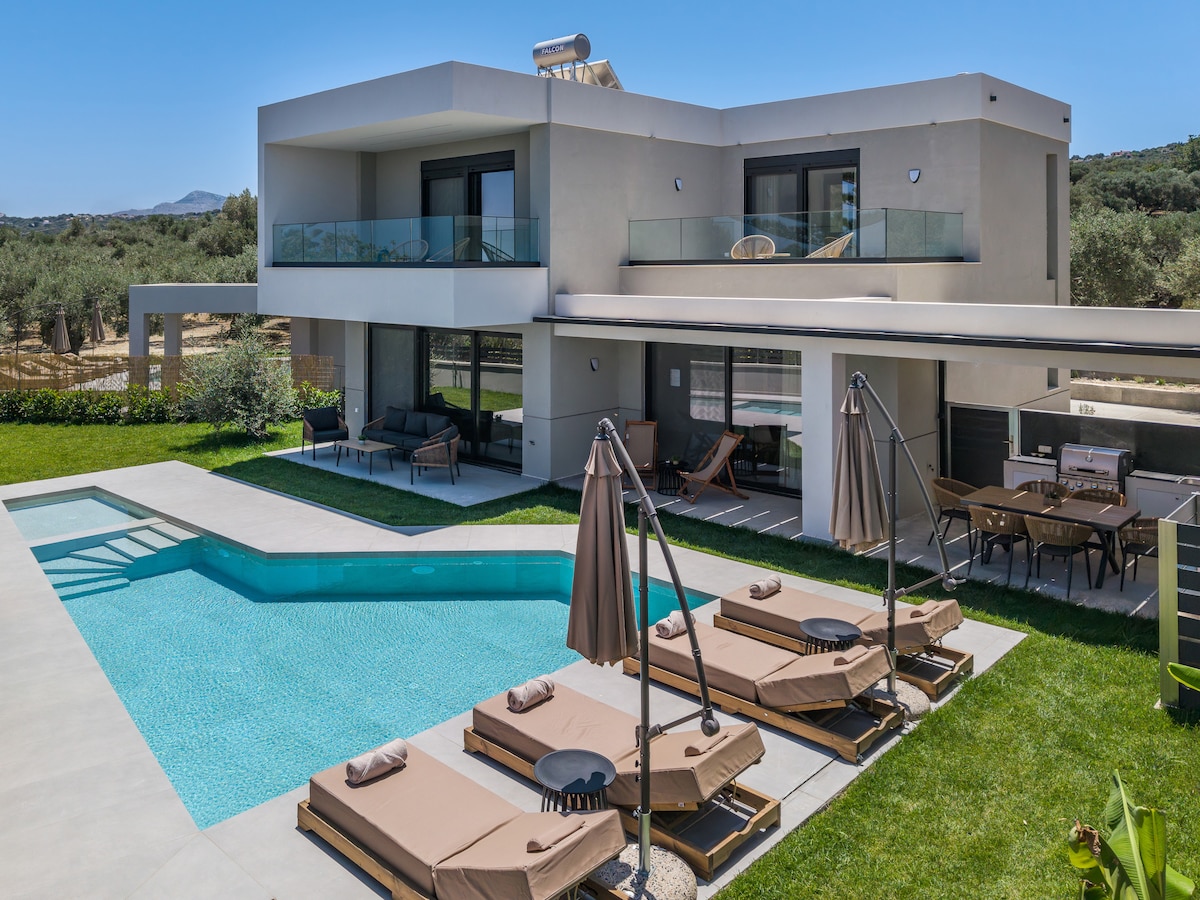 NEW Cute little luxury villa, perfect for couples. Nice and very quiet location for relaxing with fantastic and unique sea and mountain view. Chania airport is 35 minutes away and Heraklion airport about an hour. Νear the Villa and at a distance of a few minutes by car, there are several villages with many activities, taverns, supermarkets, shops. The wonderful beach of Episkopi is 10 minutes by car and the city of Rethymnon 25 minutes.