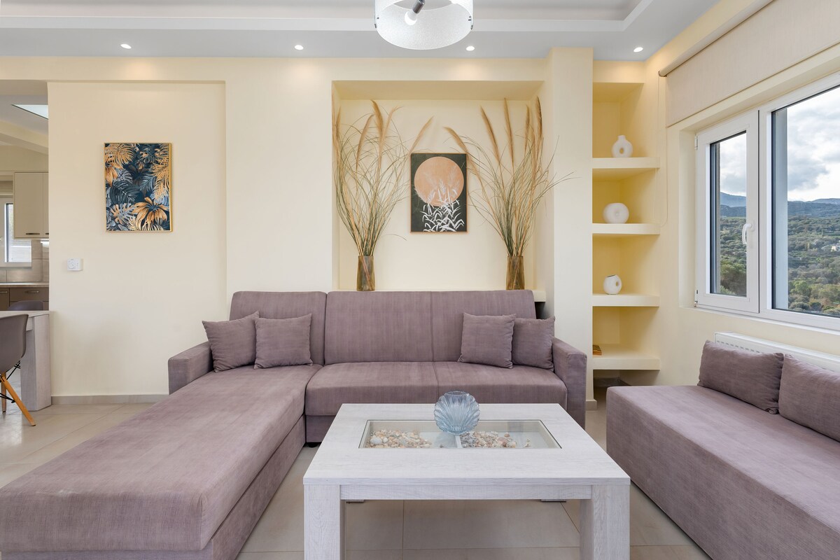 Welcome to Gaia Villa, an exquisite retreat nestled in the tranquil countryside of Gerani. Spanning 122 square meters across two thoughtfully designed floors, this villa harmoniously blends comfort, luxury, and the natural beauty of its surroundings. Perfect for families or groups, Gaia Villa can accommodate up to eight guests, offering a serene haven to relax and unwind.