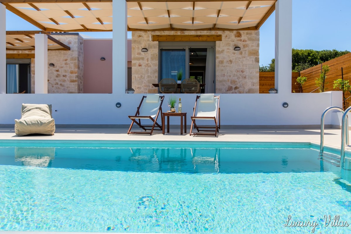 Myrtia私人别墅,★带加热玻璃泳池和按摩★浴缸,★景观★