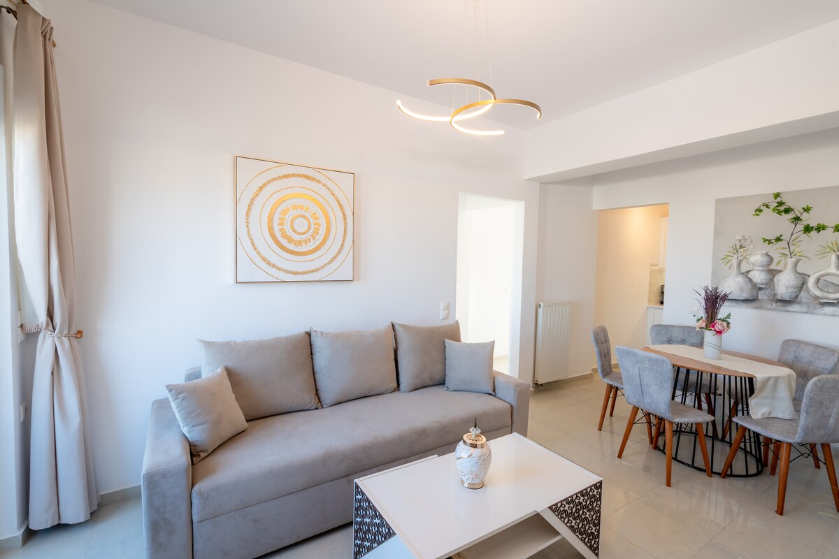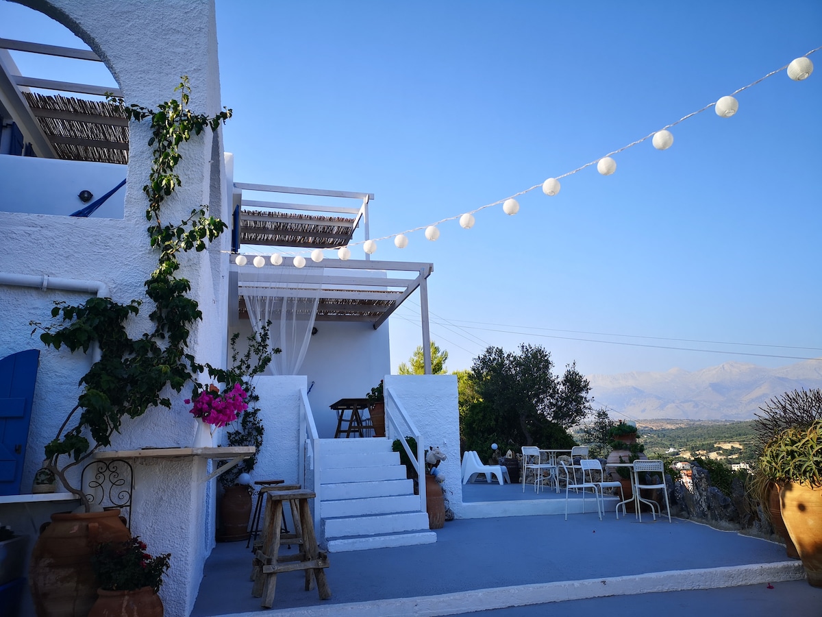 This Private suite has fantastic sea and mountain views. It has a kitchen, all utensils, a bathroom, a big living room, large private balcony with marvelous views. Very private, comfortable, and stylish. You will feel at home. With the amazing sea view. Quiet retreat away from the bustle, 7 min walk to amazing Almyrida sandy beach, shops, and restaurants. The best taverna with homemade food a few steps away. 7olivescrete Close to Samaria gorge, Balos, Elafonisi beaches, Chania and Rethymno.