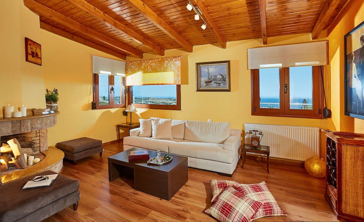Our villa is composed by noble and natural materials and offers an opportunity for detox from stress and the daily grind, as well as for connection with the Cretan countryside and culture. Our space stands out for its sophisticated rustic atmosphere, with its stone arches, wooden beams and the distinctive fireplace. From the relaxing seating areas, verandas & the swimming pool, our guests can enjoy their privacy with views to the White Mountains, the village & the lush green cretan landscape.