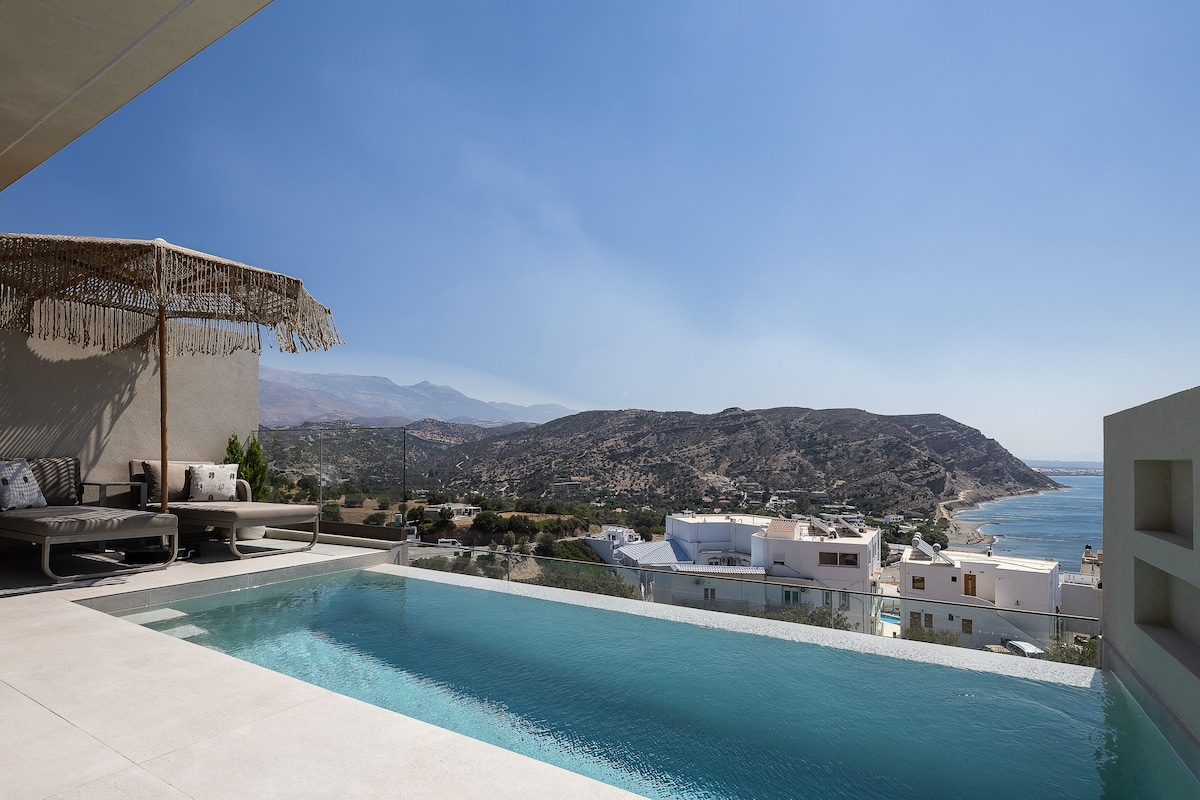 Welcome to Muar Suites, an exquisite collection of five luxurious suites nestled in the enchanting landscape of south Crete, near the picturesque village of Agios Pavlos. The pool area is shared by the five suites. Boasting inspiring seaviews, this exclusive retreat is the perfect destination. Each of our elegantly designed suites showcases a unique and stylish handmade decoration. A small kitchen, COCO-MAT production beds and high-quality linens ensure the ultimate comfort for our guests.