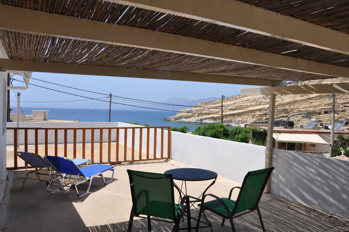 It is an apartment nice decorated in island style, blue and white, The blue color of the sea and the white foam of the waves(the different decorations in each room, make them unique and give you the sense of escape) with a kitchenette, WC, balcony or patio that you have sea view! The complex is between two beaches: the calm beach of Lygaria and the cosmopolitan Agia Pelagia beach We are 16 min about by car from Kazantzakis airport and 18 min from Heraklio port(Santorini, Pereus arrival-depart)!!