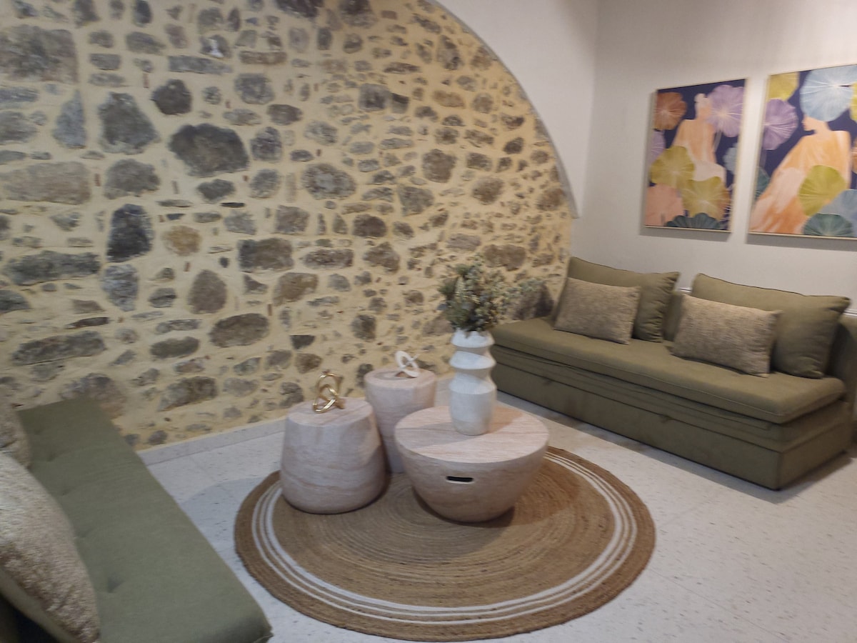 Come and relax in our newly built, stone house that carries a hint of history with it. Tucked away just 20 km from Heraklion, Crete, it sits at the heart of the old village, offering you a quiet getaway. With a blend of wood and nature-inspired design, it still provides all the modern comforts you need for a great stay. It's a hidden treasure, waiting just for you! We warmly invite you to come and experience it for yourself!